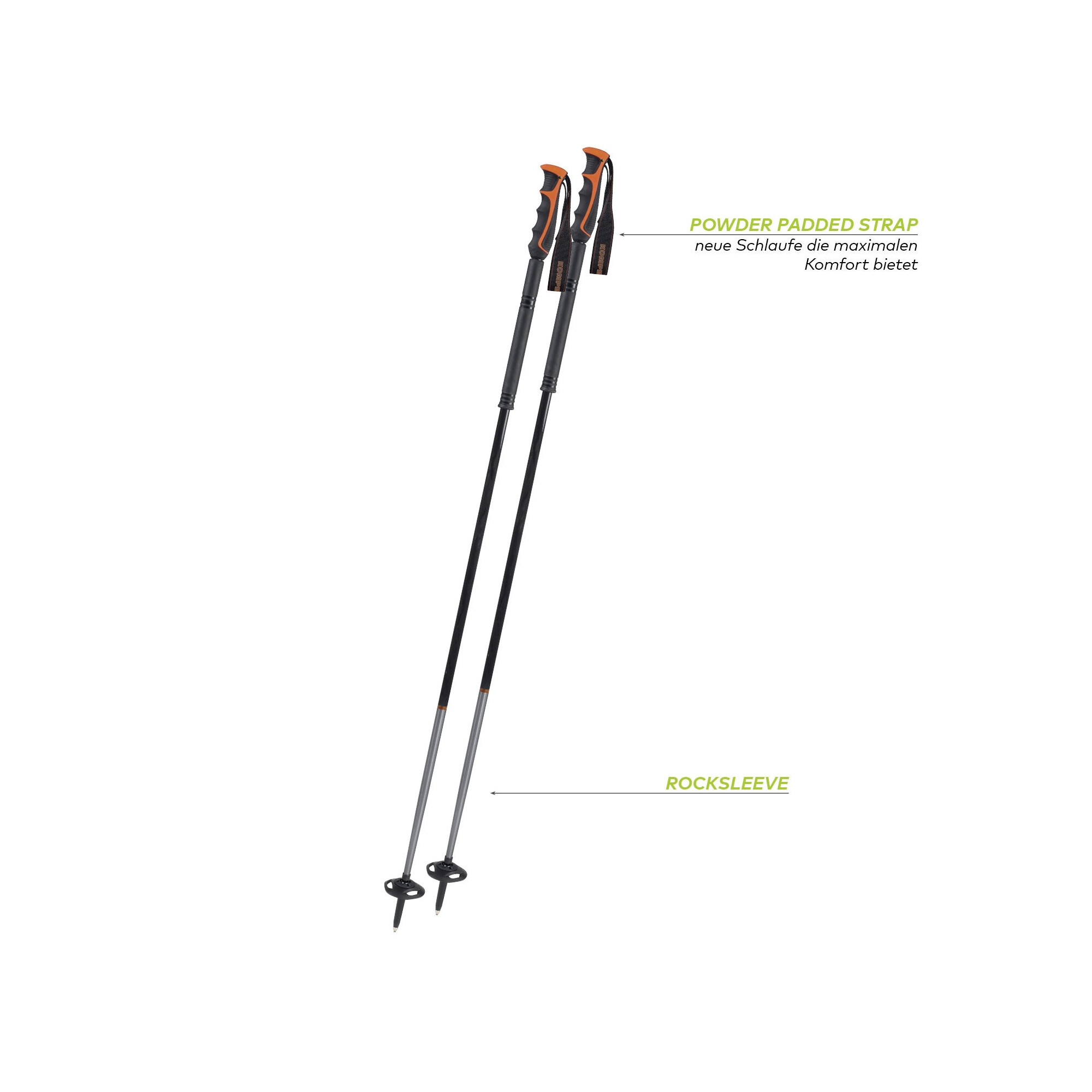 Unsere neue Descent Serie vereint das sportliche Griffgefühl aus dem Rennlauf mit der Funktionalität eines Tourenstockes. Der Descent Carbon Rocksleeve ist außerdem durch das Rocksleeve Unterteil bestens vor Schlägen geschützt und besteht leichtem Carbon. Anhand des beweglichen Eisflankensystems passt sich der Teller bis zu 28° an die Hangneigung an.