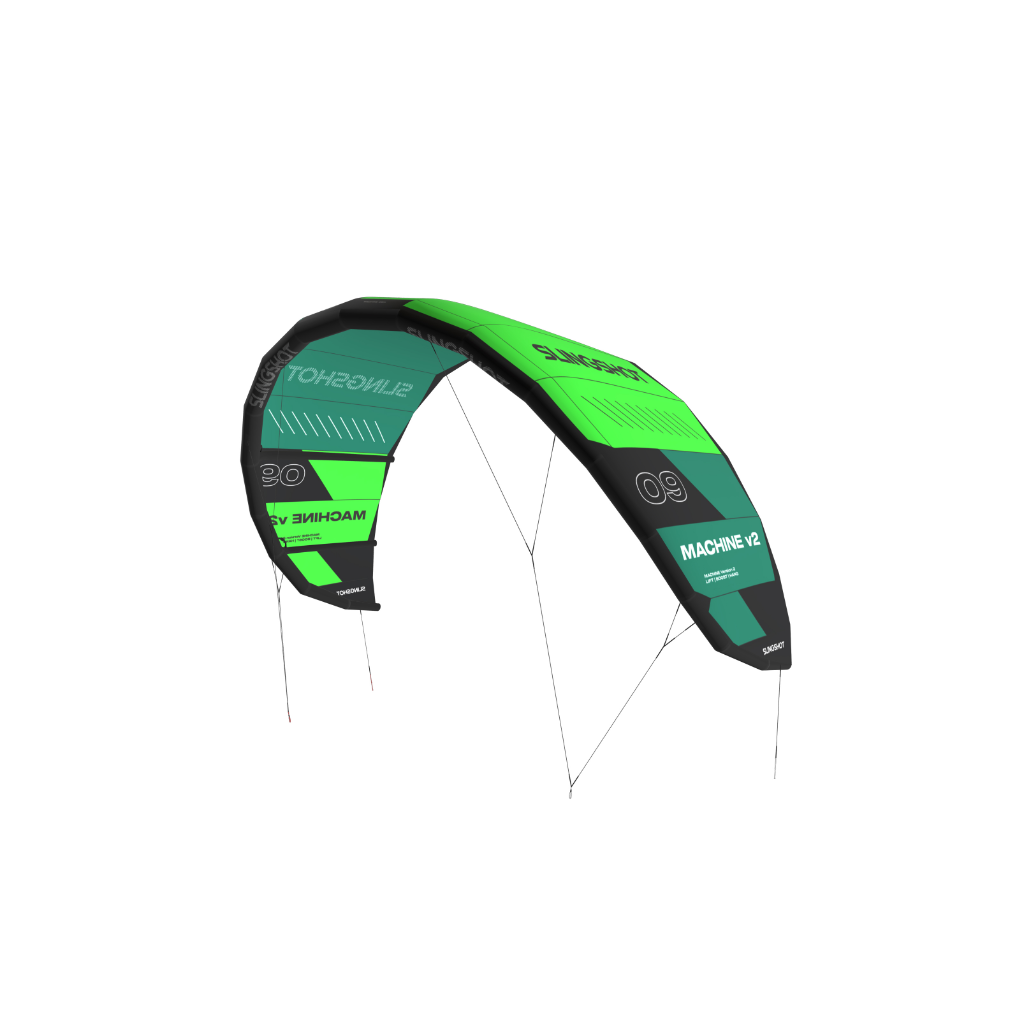 Der Slingshot Machine V2 Kite ist der Hochleistungs-Kite aus dem Hause Slingshot. Kein anders Modell aus der Slingshot Palette hat so viel Kraft und geht so hoch hinaus wie die Machine. Die 5 Strut Konstruktion bietet Dir auch bei starkem Wind eine sehr gute sehr gute Stabilität und sorgt dafür, dass Du den Kite sehr gut kontrollieren kannst.